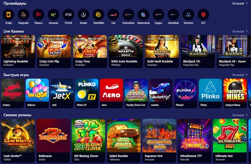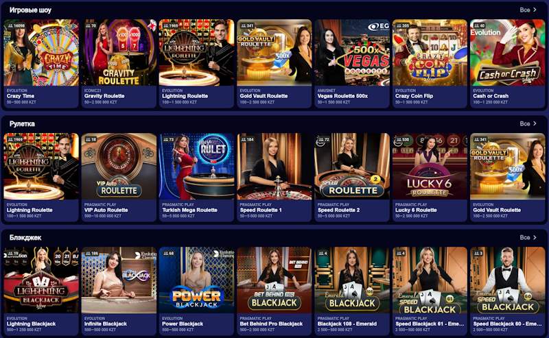 Особенность платформы в том, что она предлагает не только тысячи автоматов, но и разные игровые форматы. Популярны слоты с механикой Megaways, джекпотами и функцией покупки бонуса. В лайв-казино доступны рулетка, покер, блэкджек и игровые шоу. А для тех, кто любит экспериментировать, предусмотрен виртуальный спорт и быстрые краш-игры.